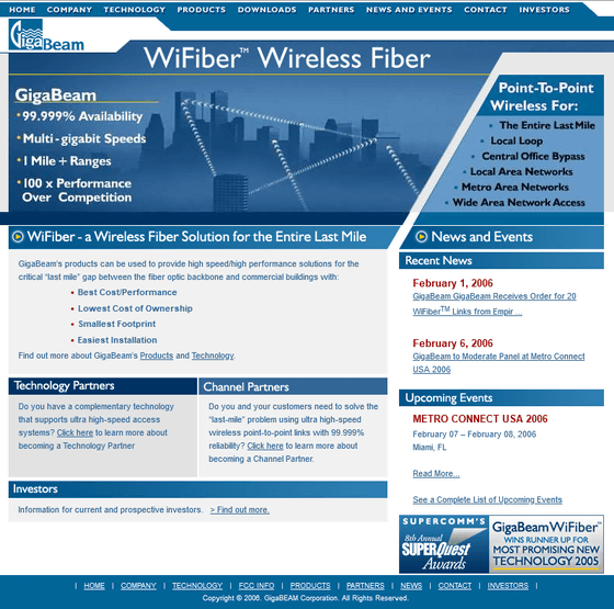 GigaBeam Corporation --Point-to-Point Wireless With The Speed and Reliability of Fiber