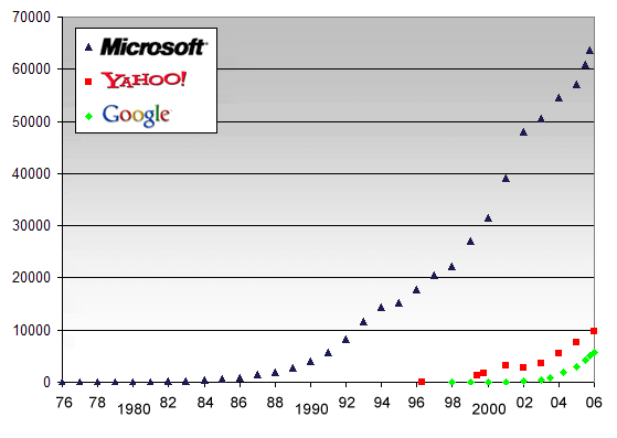 Gabor's Blog: Timeline: Employee Headcounts for Google, Yahoo, and Microsoft