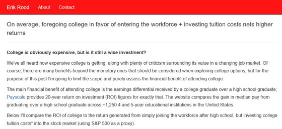 By the way, Mr. Erik Rood himself who made the data himself scenario is based on the assumption and commented "I recommend going to the university like my own."