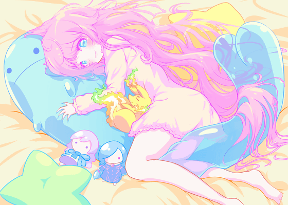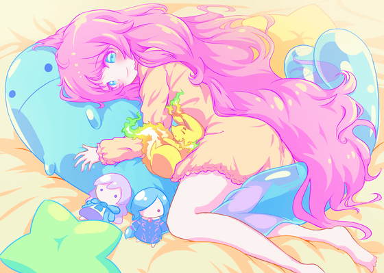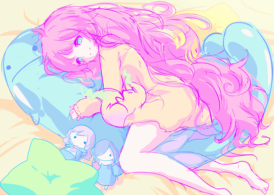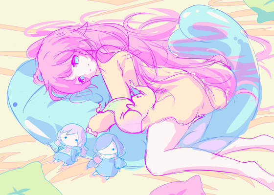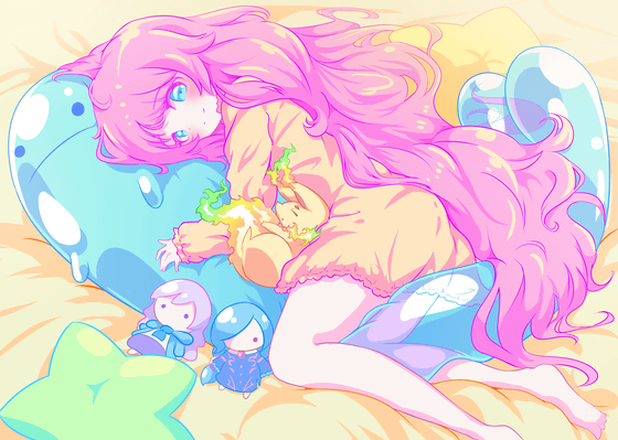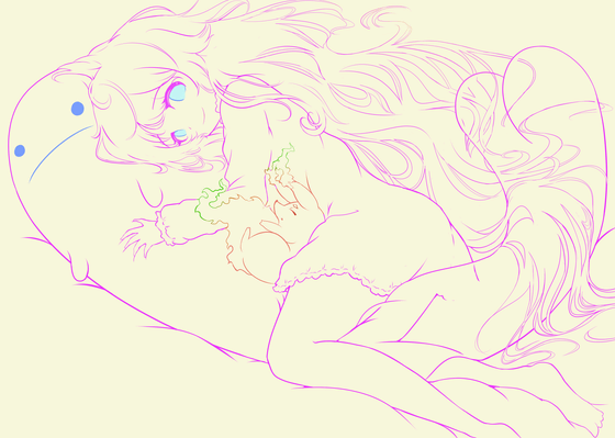 Rough part 3 completed in this way is as follows. Make the thrown-up hair more messy, create a `` depth '' like a pillow in the back of the stuffed toy, make it an interesting composition, strengthen the soft impression on the ground contact surface with the bed A number of ideas have been added to bring out the theme and charm of illustrations.