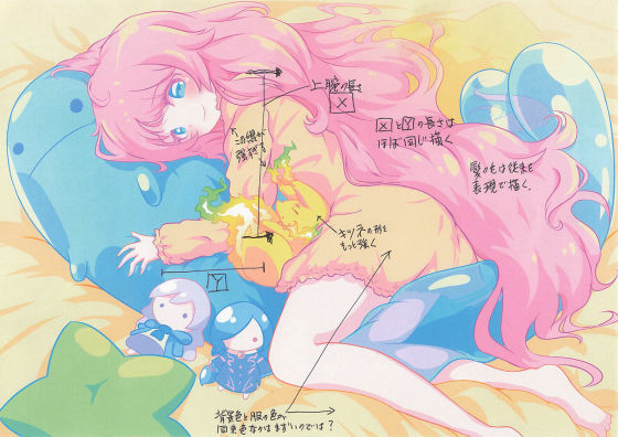 Regarding the second fine point, it is particularly important how to draw the hair. The cluttering and throwing clutter is attractive, but it seems to repeat the same curve, so it must be firmly and intentionally random. It is also important to draw “hands” that characterize the characters as much as facial expressions, and for the same reason, at least one of them should have “foot tips” in the screen. The more detailed part, the more attractive the illustration can be made by adding a little bit to the ground contact surface between the feet and the bed.