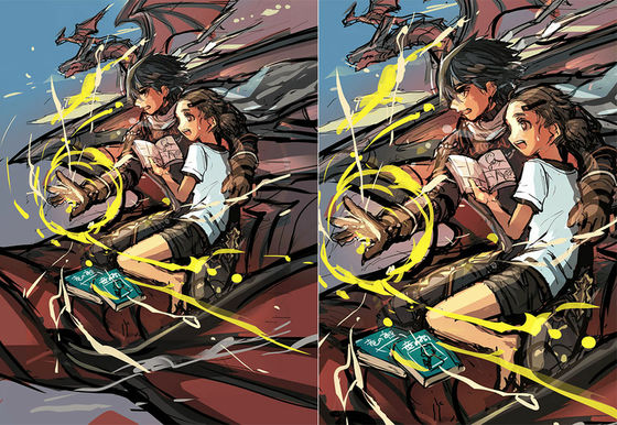 Left is before correction, right is after correction. In addition to the closer distance between the two characters, the dragon's head is in the background and the concept is easier to understand.