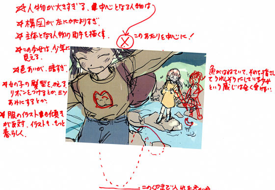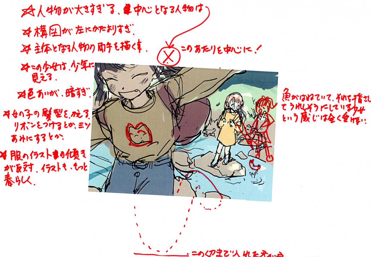 Detail rough reflecting the correction. The character has been significantly changed to increase the impression of brightness and to make the girliness easier to understand.
