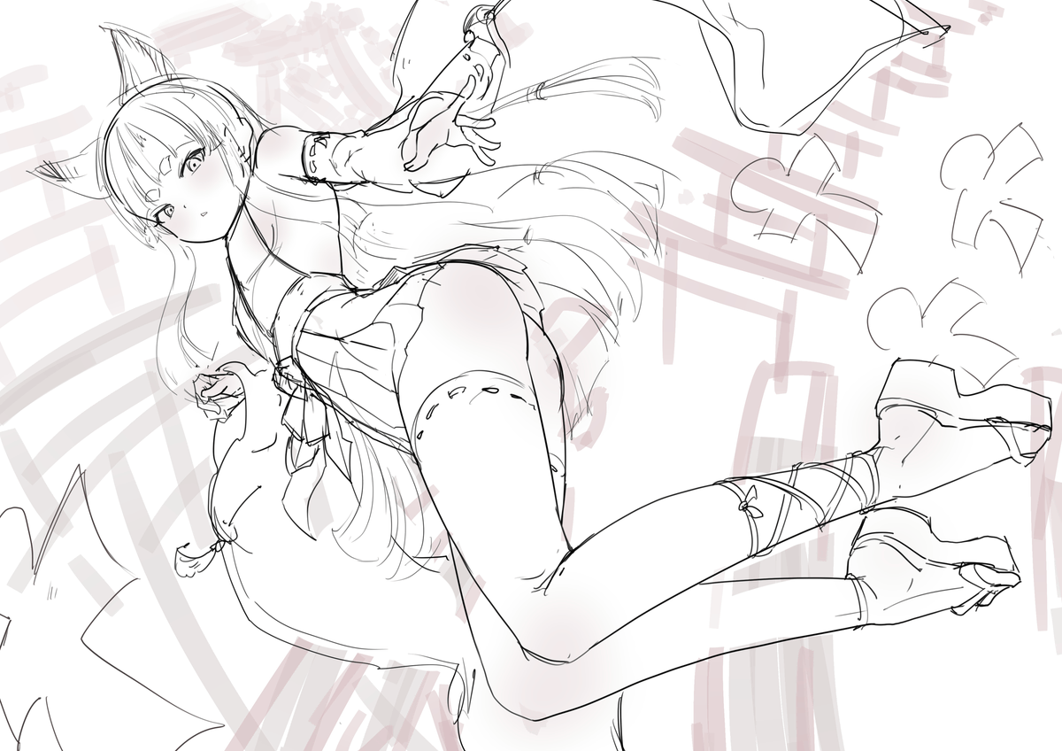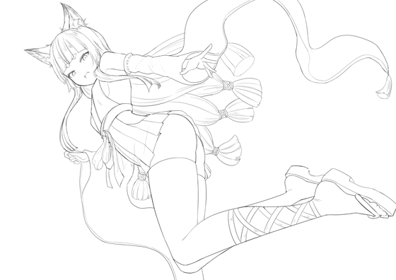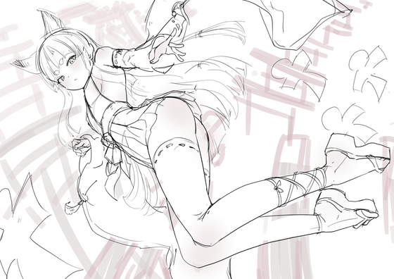 First of all, I had you show a rough idea rough as a draft. A cute character is an attractive rough, but from the point that `` things parallel to the vertical / horizontal lines (vertical and horizontal lines) and diagonal lines of the screen will look at the parallel lines and the composition will collapse '' Fine-tune the character's body clockwise to avoid diagonal lines. In addition, while the pose with the fascination is attractive, because the composition of the body is difficult to draw anyway and the balance tends to look strange, we asked for attention to the actual appearance of the body and the body structure .