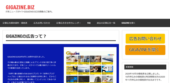 GIGAZINE.BIZ | Information on advertising on the IT news site GIGAZINE.