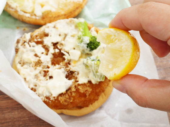 First of all, when I opened the shrimp burger of shrimp bro salad, a combed lemon was sandwiched between the burgers. It's a very strange sight.