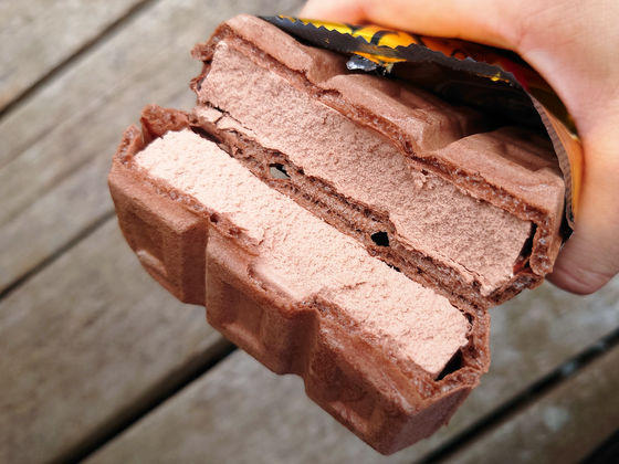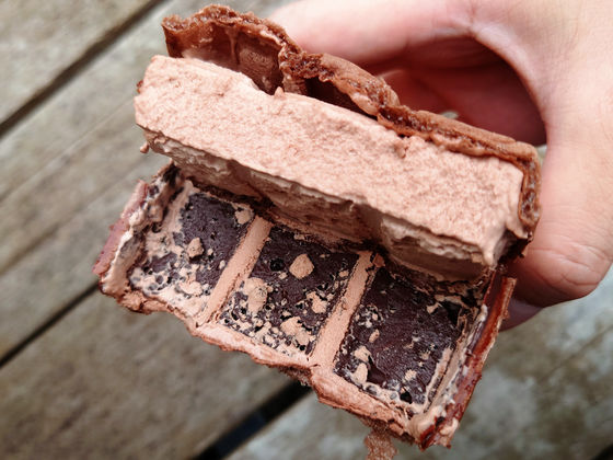 Not only the ice cream but also the Monaka part is chocolate-colored.