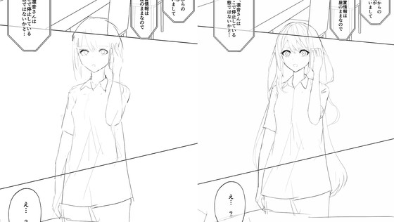 Of course, when drawing a manga, it would be great if all the pages were finished perfectly, but that would take too much time, and all the qualities would be uniform and the impression would be weakened. In the third episode production flow of 'Secret Miyazono', the original name was first roughly created by the person in charge of drawing → drawing, but there are some requests that 'this is an impressive scene, so I'm enthusiastic about drawing'. Further additions have been made.