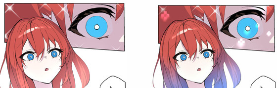 In addition to the above parts, the parts that I would like you to notice on the drawing screen are added by the person in charge of the original after drawing. In the frame of the image, a flower-like effect is added to the eyes of Rinne in the first frame. In this way, we are devising ways to improve the quality of manga.