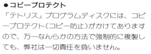 Below is the Tetris floppy disk (FD) that arrived with Bungo mini5 SX. The label says ``Not for Sale'' and also includes the license notation ``© 1987 ELORG MOSCOW, USSR.'' According to leaded solder, the code suggests that it was developed in August 1991, just before the formal dissolution of the Soviet Union was decided, and the last Tetris to be licensed by ELORG as a 'Soviet company' was It has been suggested that this may be the Bungo mini5 version of Tetris. You can also see that Tokyo System House is the company that obtained the license and ported Tetris to the Bungo mini5.