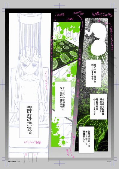 For example, the image below is the first draft name of the page that appears in the first part of Episode 5. It is a cruel scene that 'I was recording the data of the human brain, nerves and cells to make AI'.