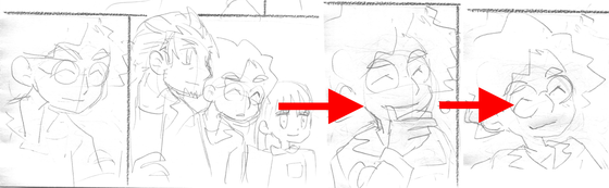 In particular, the last panel depicts the reaction of Iga-senpai, who supported Kiyu's first contract in the first episode and sent Kiyu the memorable words, 'Let's try to get closer to 100%.' . In order to make it easier to convey Iga-senpai's emotions here, we are considering adding hand movements and changing his posture from leaning forward to leaning back, making small adjustments.
