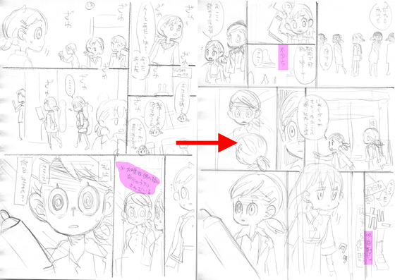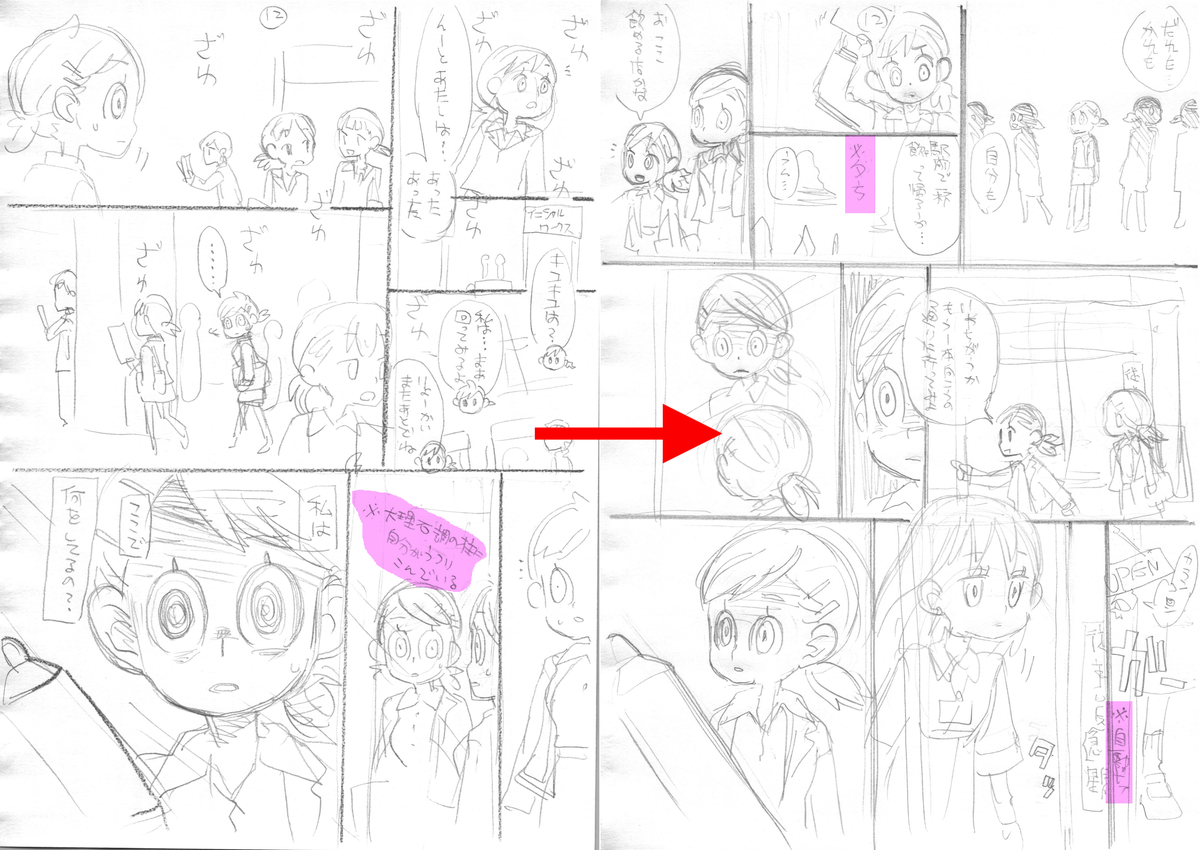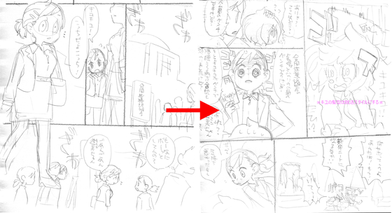 There are also two changes on the last page. First of all, Kiyu's feelings of ``feeling bad about herself'' were only described as general anxiety in the initial name, so she clearly expresses them and clarifies them. Second, since episode 7 depicts the scene where Kiyu visits the gas shop and Hoshimi living facilities for the first time, Hoshimi appears at the end of the episode to make it easier to connect to that scene. The last panel was Kiyu's anxious face, but it was changed to a scene in which Arika appears, making the gloomy reading experience a positive one.