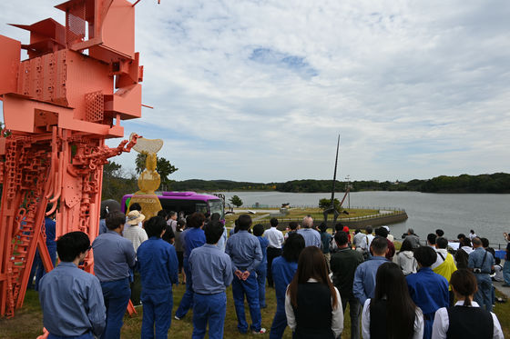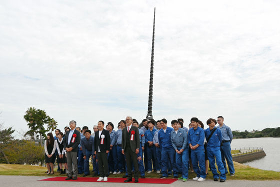 After the ceremony, Ube Steel officials also gathered around the spear.