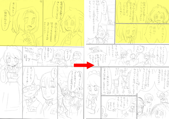 First of all, the first page of episode 11 looked like this at the initial stage. Episode 11 is structured like a sequel to episode 10, so the first page of episode 11 shows the 'previous synopsis'.