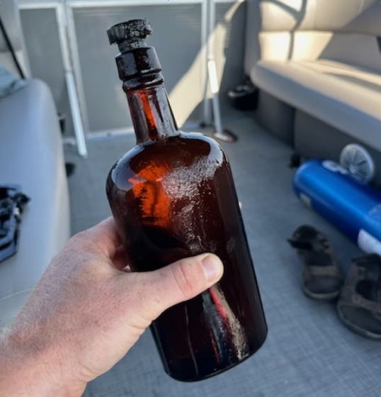 Then in the summer of 2024, Proger and his team dived again and pulled up the remaining five bottles. Two of the bottles had their corks blown off during the dive, but the other three were able to be safely pulled up. Here is one of the bottles Proger and his team actually recovered.