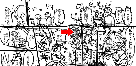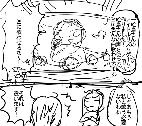 The main reason for this change was to match the punch line. The image below has some lines and a different composition from the original version, but the punch line 'I made a rhythm game from Eshima's karaoke' was decided from the initial name. Therefore, it was necessary to have Eshima sing the song that would be the material for the game.