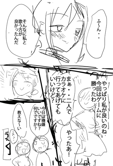 The name of the fifth episode was repeatedly adjusted to get the setup and punch line right. The fifth episode is about Ejima, who usually pokes fun at Kaido, but when she gets drunk she gives up on tsukkomi, creating a special atmosphere. For example, the following page functions as a setup for this purpose. The frame depicting Kaido being startled by Ejima, who is drunk and clinging to her, has been changed from a frame showing her simply blushing (left image) to one showing her 'shocked and dropping her tablet' (right image).