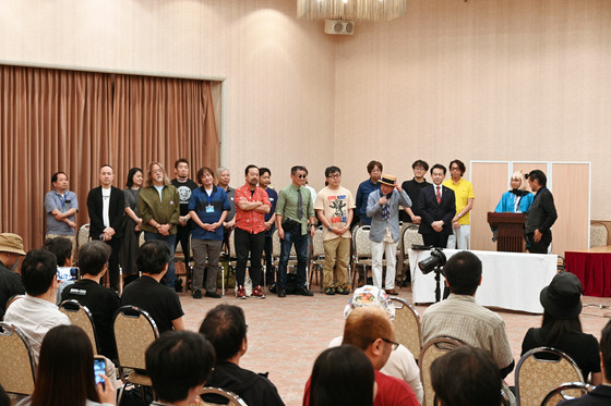 An impressive line-up of guests have gathered, including Chafurin (the man holding the microphone), who plays roles such as Inspector Megure in 'Detective Conan' and Isono Namihei in 'Sazae-san.'