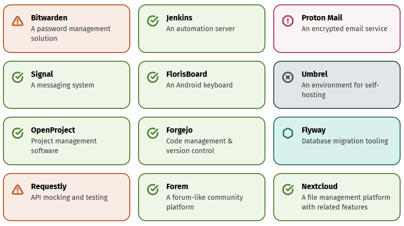 Also, Proton Mail, a well-known encrypted email service, has a GPLv3 license for its email client, but the service itself is not FOSS, so it's a no-go.