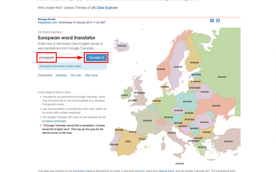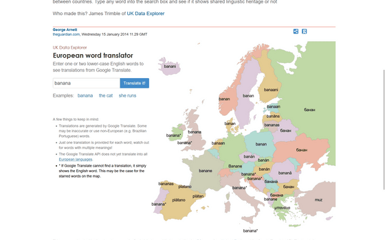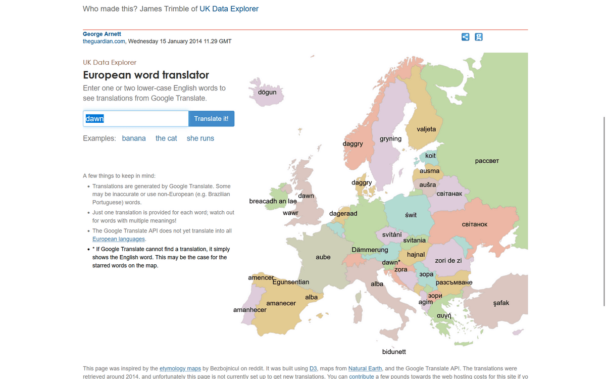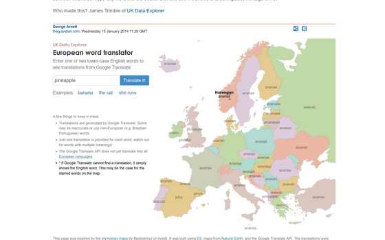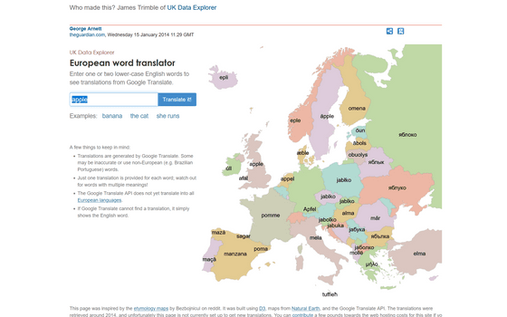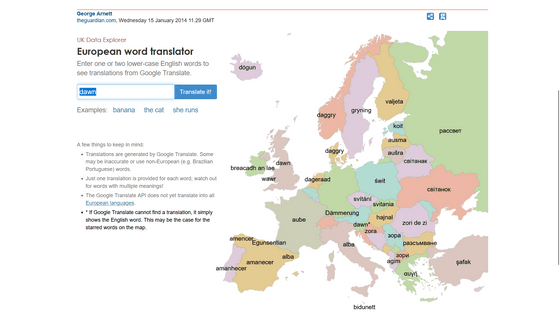 The British newspaper The Guardian has a website called ` `European word translator '' that translates English words into various languages used in Europe, so I tried it out.