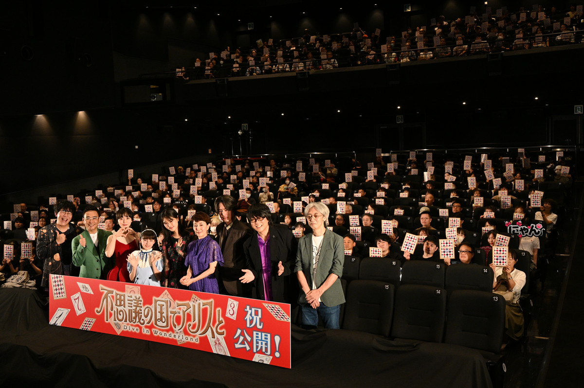 Dive in Wonderland , the first animated feature film in Japan based on Lewis Carroll's classic Alice's Adventures in Wonderland , was released nationwide on Friday, August 29, 2025. On Saturday, August 30, 2025, the first weekend after its release, a premium stage greeting to commemorate the release was held at Marunouchi Piccadilly, with eight cast members, including lead actress Nanoka Hara as Rise and Mica Pyu as Alice, and director Toshiya Shinohara taking to the stage.