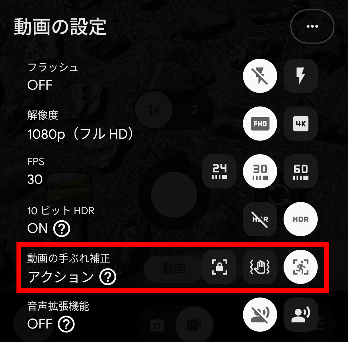 The Pixel 10 series allows you to switch the video stabilization setting to 'Action' to effectively reduce shake, similar to action cameras like GoPro. However, enabling Action limits the recording settings to a maximum of 1080p and 30fps. The iPhone 16 Pro also has a similar feature called 'Action Mode,' which allows you to record video with less shake at up to 1080p and 60fps.