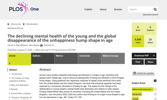 It has long been known that middle age is the time when people are least happy and most likely to feel miserable, and that happiness over the lifespan follows a U-shaped curve. However, in recent years, there have been signs that happiness is declining even among younger generations, with the deterioration of mental health among young people becoming a problem.