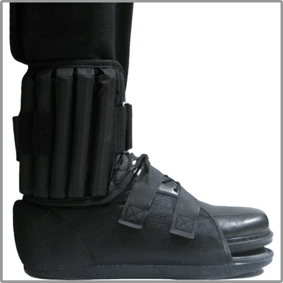The shoes mimic unsteady walking, with a soft sole that creates a spongy feel and obscures contact with the floor.