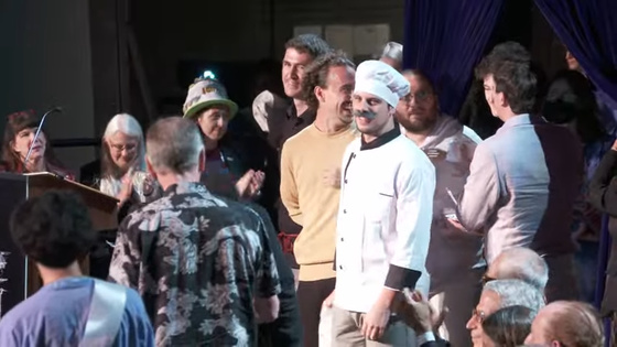 However, since Miss Sweetie Poo was unable to attend this event, researcher Gary Dreyfuss took over in her place, donning an apron.