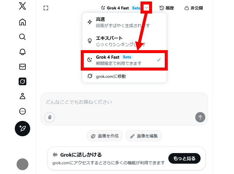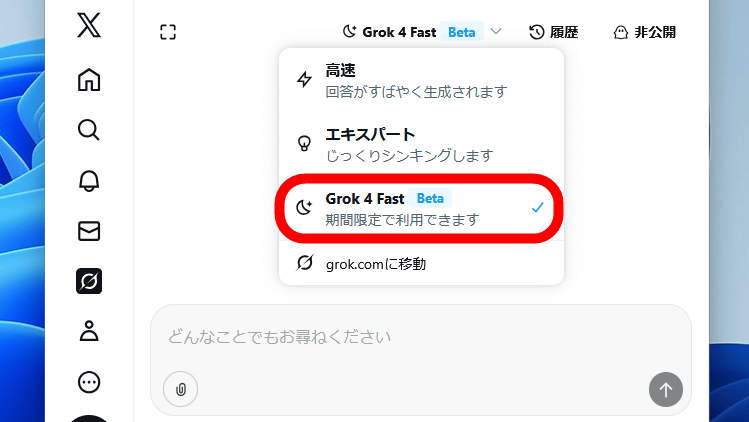 First, open the Grok chat screen on X and select 'Grok 4 Fast' in the model selection field at the top of the screen.