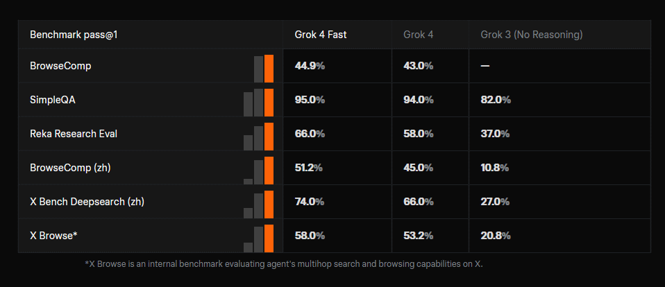 In tests focused on the ability to search and organize information on the web, the Grok 4 Fast outperformed the Grok 4 in every test.