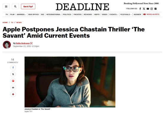 https://deadline.com/2025/09/the-savant-jessica-chastain-postponed-apple-1236553658/