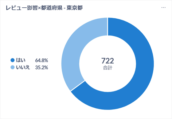 Among GIGAZINE readers living in Tokyo, 64.8% responded that they had purchased a product or service based on a review article. This is a higher percentage of readers who were influenced by reviews than when the survey was limited to male readers only.