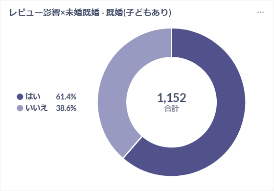 Among GIGAZINE readers who are married (with children), 61.4% responded that they have been influenced by review articles.
