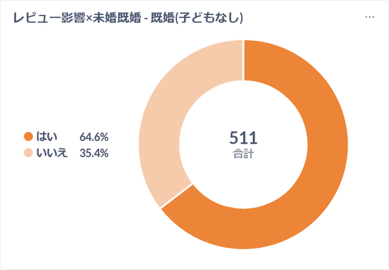 Among GIGAZINE readers who are married (without children), 64.6% responded that they have been influenced by review articles.
