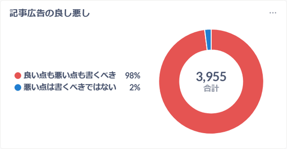 When we asked GIGAZINE readers about this, 98% of them answered that 'both the good and the bad points should be written.'