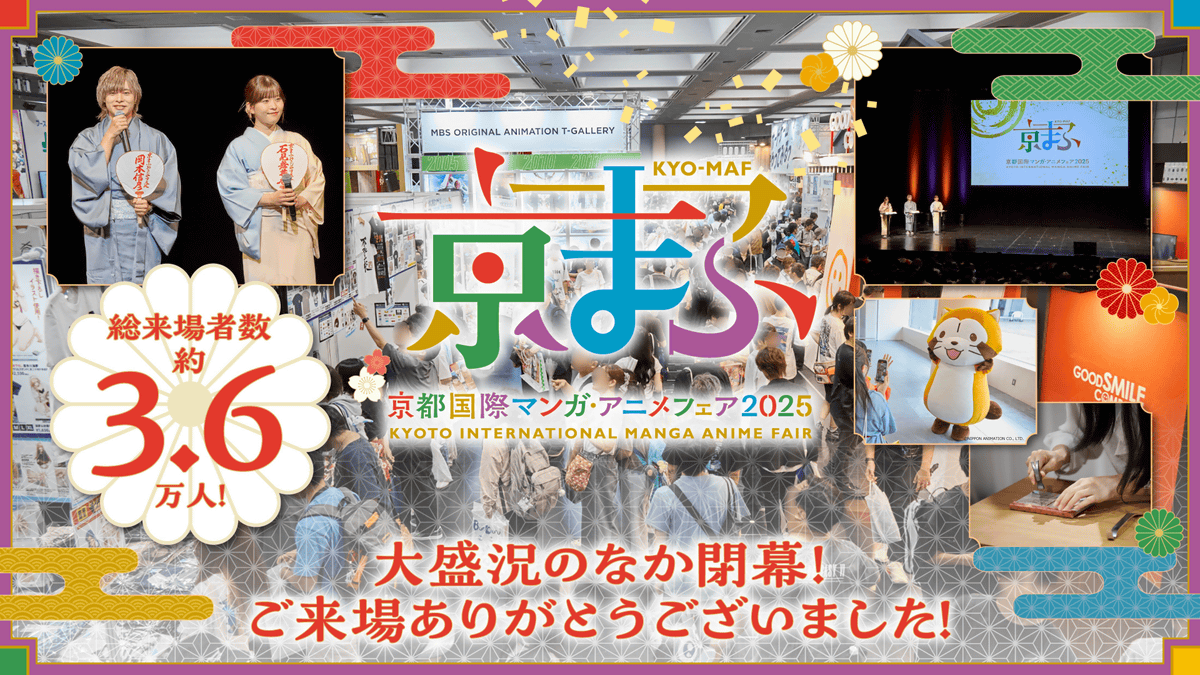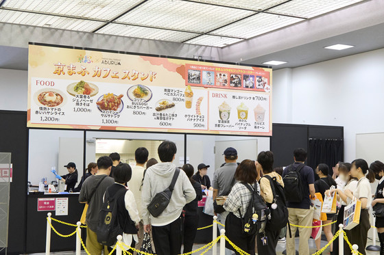 At the main venues, Miyako Messe (Kyoto City Industrial Promotion Hall) and ROHM Theatre Kyoto (Kyoto Kaikan) , 66 companies and organizations exhibited, and in addition to exciting merchandise sales, limited edition video screenings, figure exhibits, and mascot greetings, a total of 25 stage programs were held. In addition, original menus created by Okoshiyasu Ambassadors Nobuhiko Okamoto and Manaka Iwami were sold at the Chara Cafe, and merchandise including collaboration visual goods were lined up at the Kyomafu Shop.