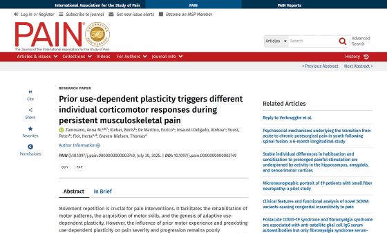 Previous studies have shown that pain alters various responses of the body and brain, reducing activity in the motor cortex, the area of the brain that controls muscles, and preventing overuse of an injured area, thereby helping to prevent further damage.