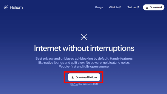 ' Helium ' is a PC browser developed based on Chromium, just like Google Chrome, and has several useful features added, such as the ad blocking extension 'uBlock Origin' as standard and support for split-screen display. It is also designed to be lightweight, so I tried using it.
