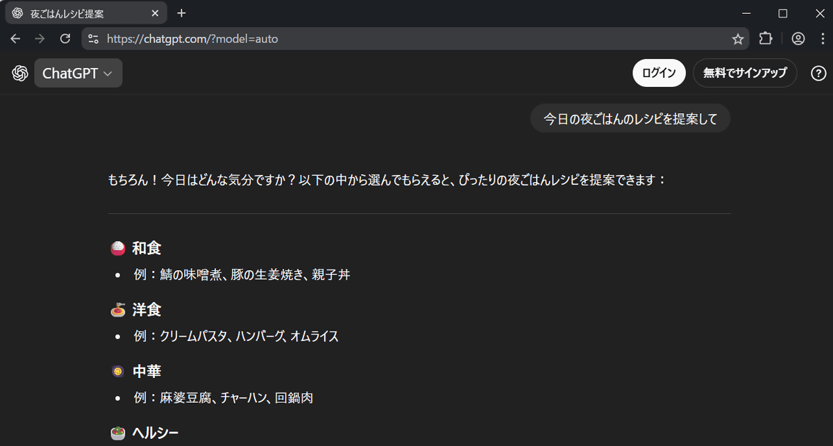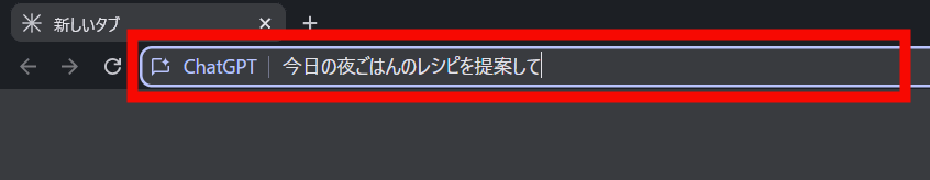 With 'ChatGPT' displayed in the address bar, try typing 'Suggest a recipe for tonight's dinner.'