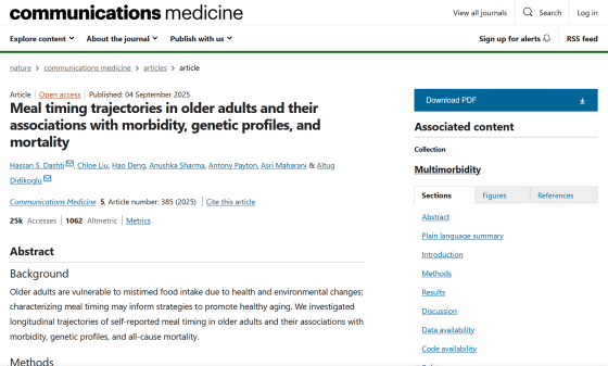 Meal timing trajectories in older adults and their associations with morbidity, genetic profiles, and mortality | Communications Medicine