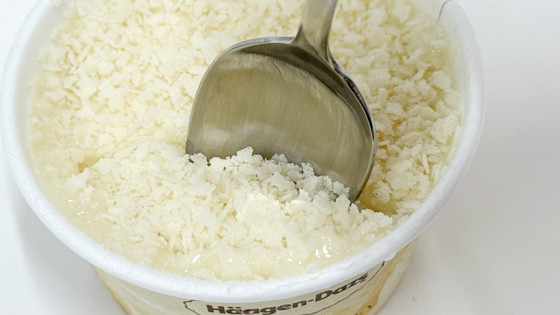 The white chocolate ice cream mixed with white chocolate sauce is infused with liquor, giving it a rich sweetness with a refreshing aroma that feels a bit mature. The white feuilletine has a light and crispy texture, and the crisp milk coating adds a nice accent. This ice cream, with its pure white and cute appearance, is named after an 'angel,' but it gives the impression of being a luxurious snack perfect for the evening rather than a midday snack.