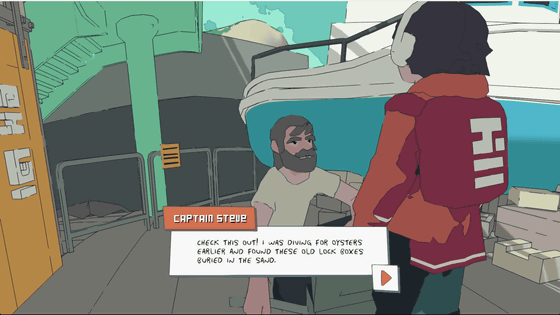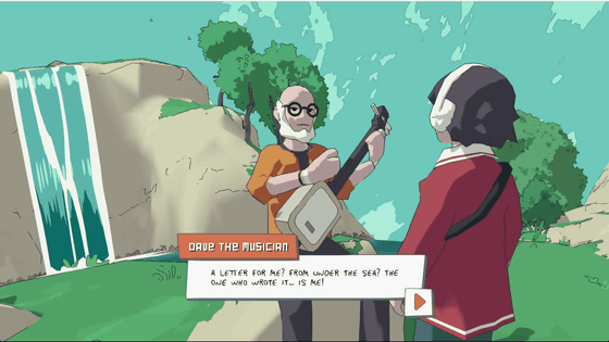 The man is a fisherman who discovered the box in the sand on the seabed while diving to harvest oysters. He asks the player to deliver the letter inside to 'Dave,' who is near a waterfall. The messages displayed throughout the game are all in English, but they are very simple and can be read by anyone with a junior high school level of English.