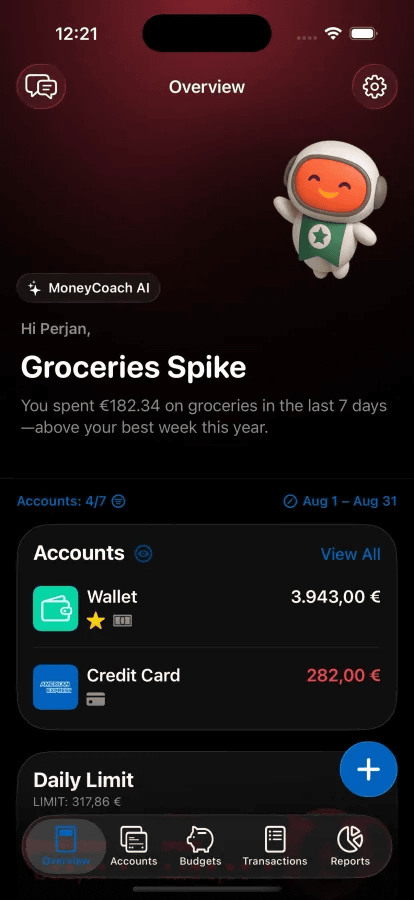 MoneyCoach, a financial tracking app, uses Foundation Models to power two useful features: it displays spending insights, such as whether you spent more than average on groceries in a given week, and it automatically suggests categories and subcategories for each expense item for easy entry.