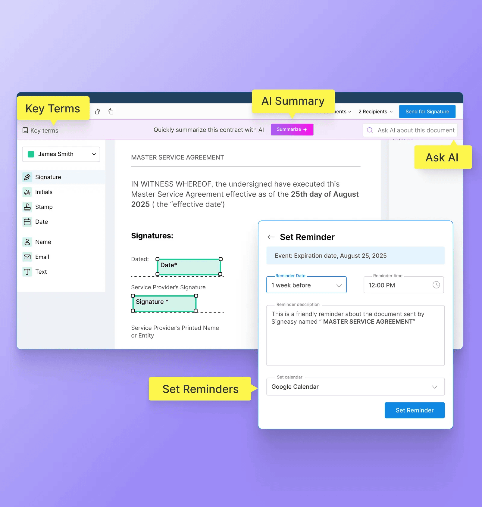 Signeasy, a digital signature app, uses Foundation Models to extract key insights from contracts and provide users with an overview of the document they are about to sign.