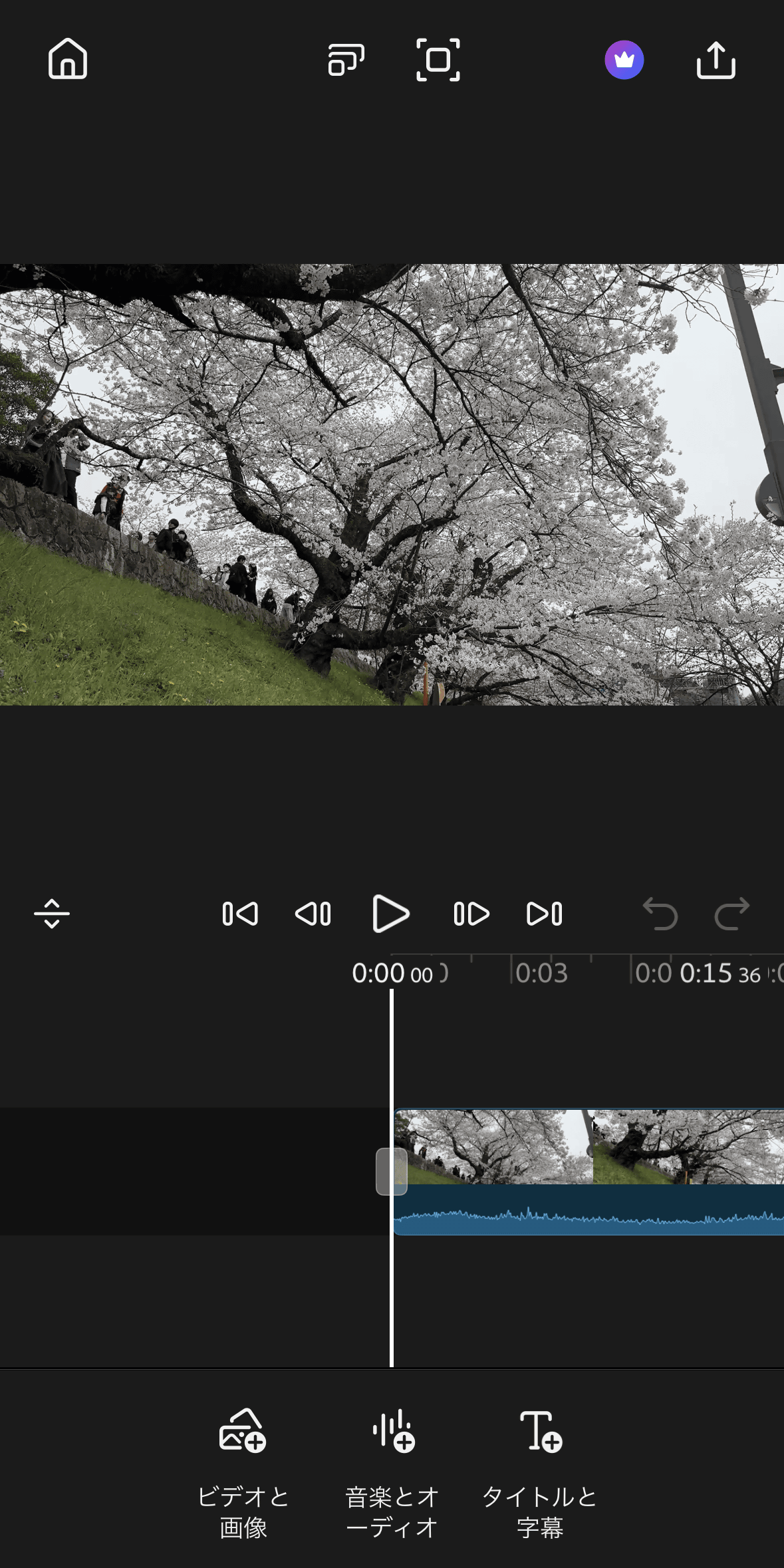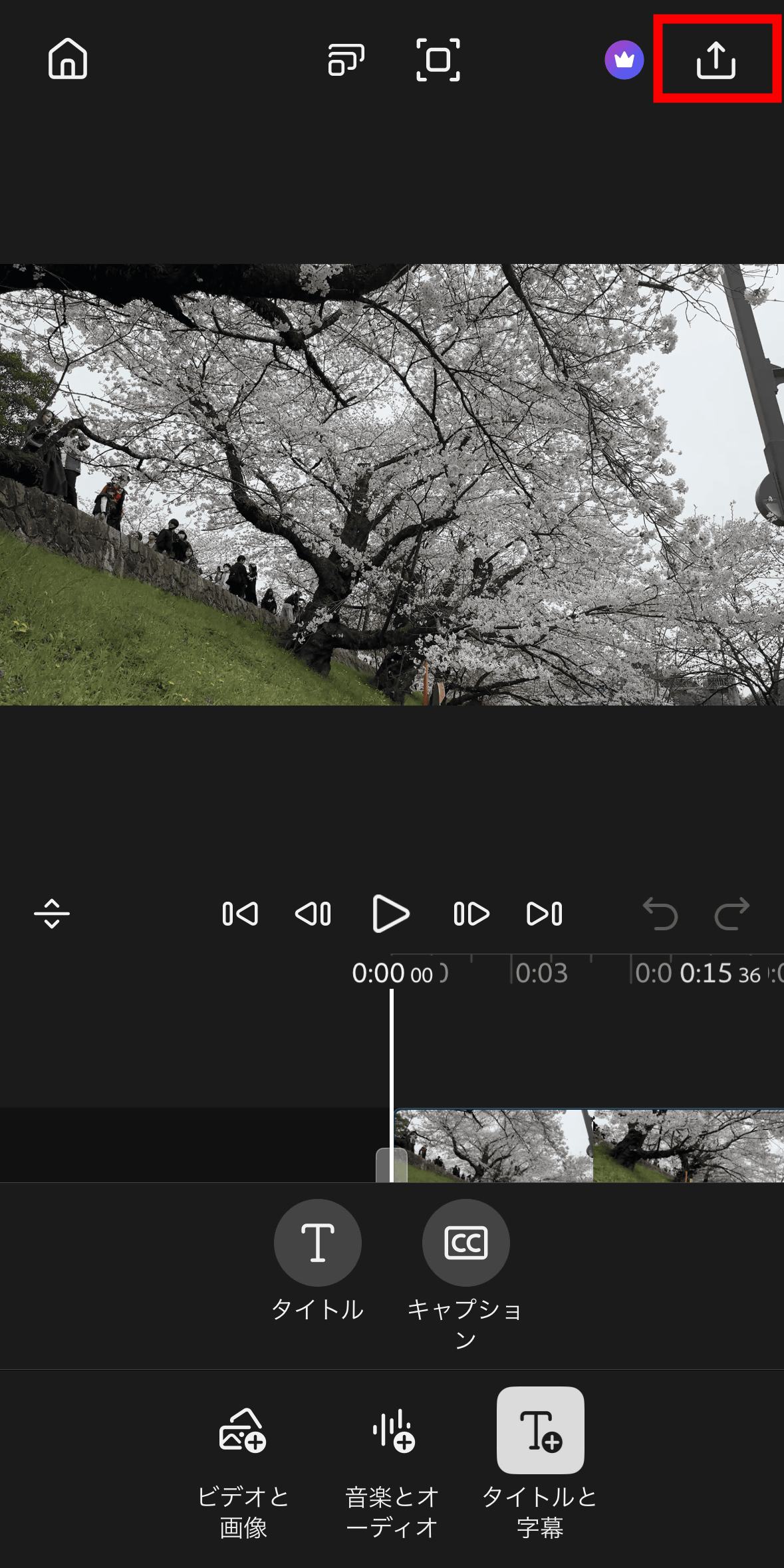 Editing is limited to basic cut editing, adding background music and sound effects, and inserting subtitles. Once you're done editing, tap the icon in the top right corner.