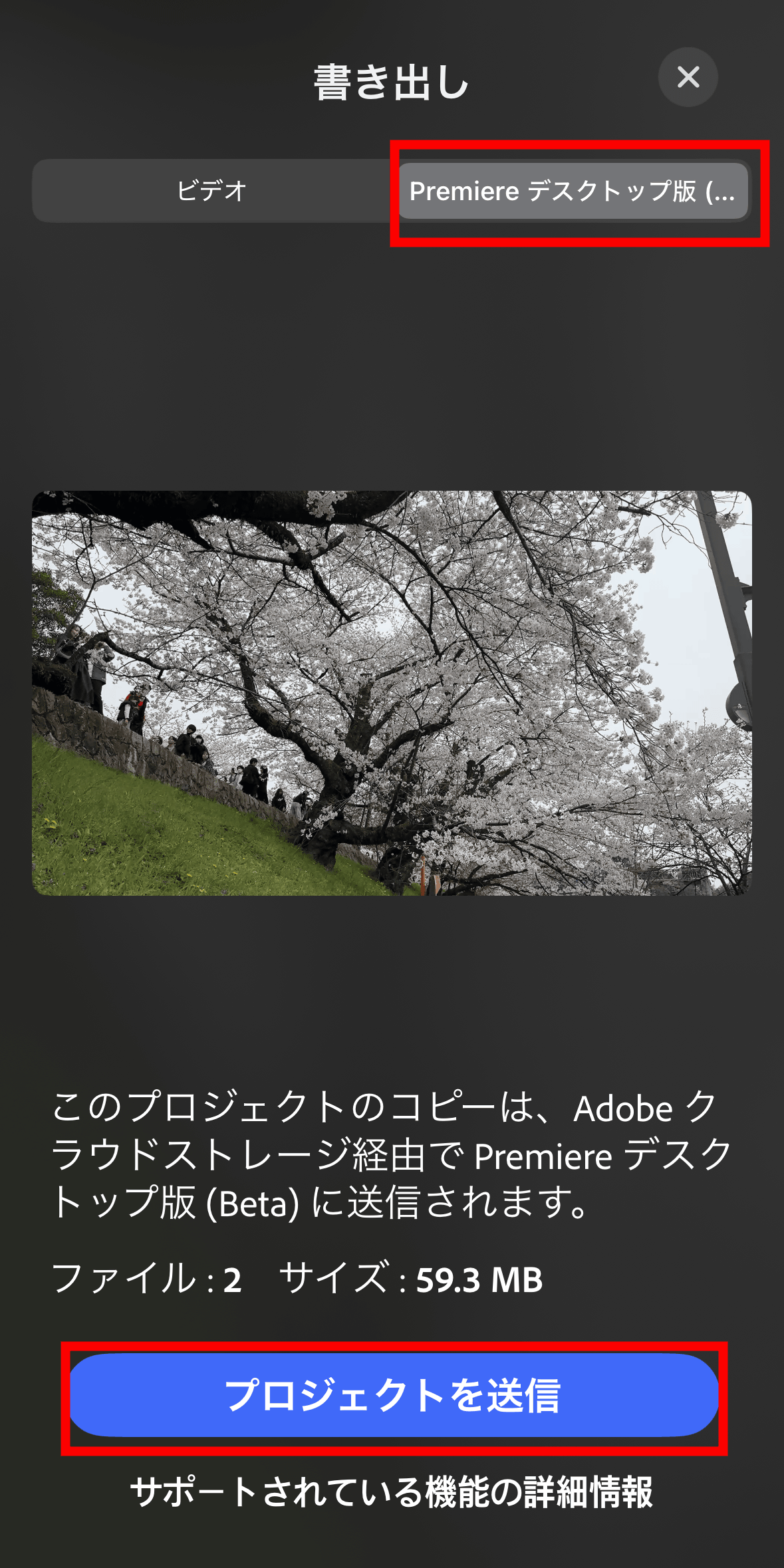 You can also select 'Premiere Desktop (...)' at the top of the screen to send media files and projects edited on the iPhone version to the desktop version via Adobe's cloud storage. However, the desktop version you receive will be a beta version.