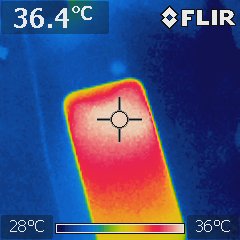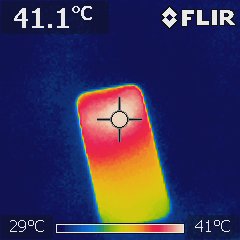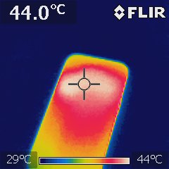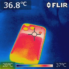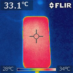 We measured the temperature of the battery while it was charging using the infrared thermography '