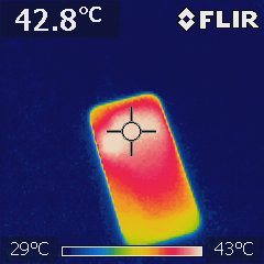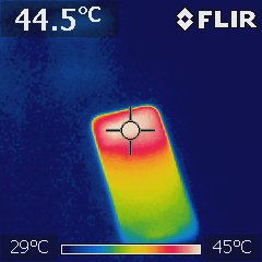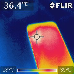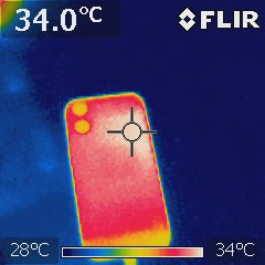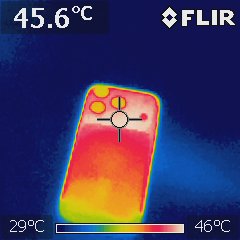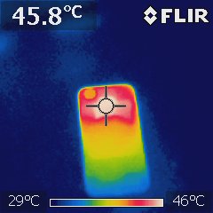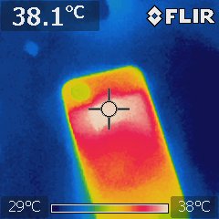 The back of the device was around 38°C. None of the models felt hot while charging.